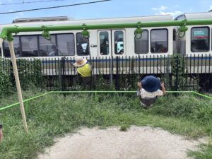 実際の電車を運転しているような臨場感が味わえ、子どもたちも真剣そのもの。